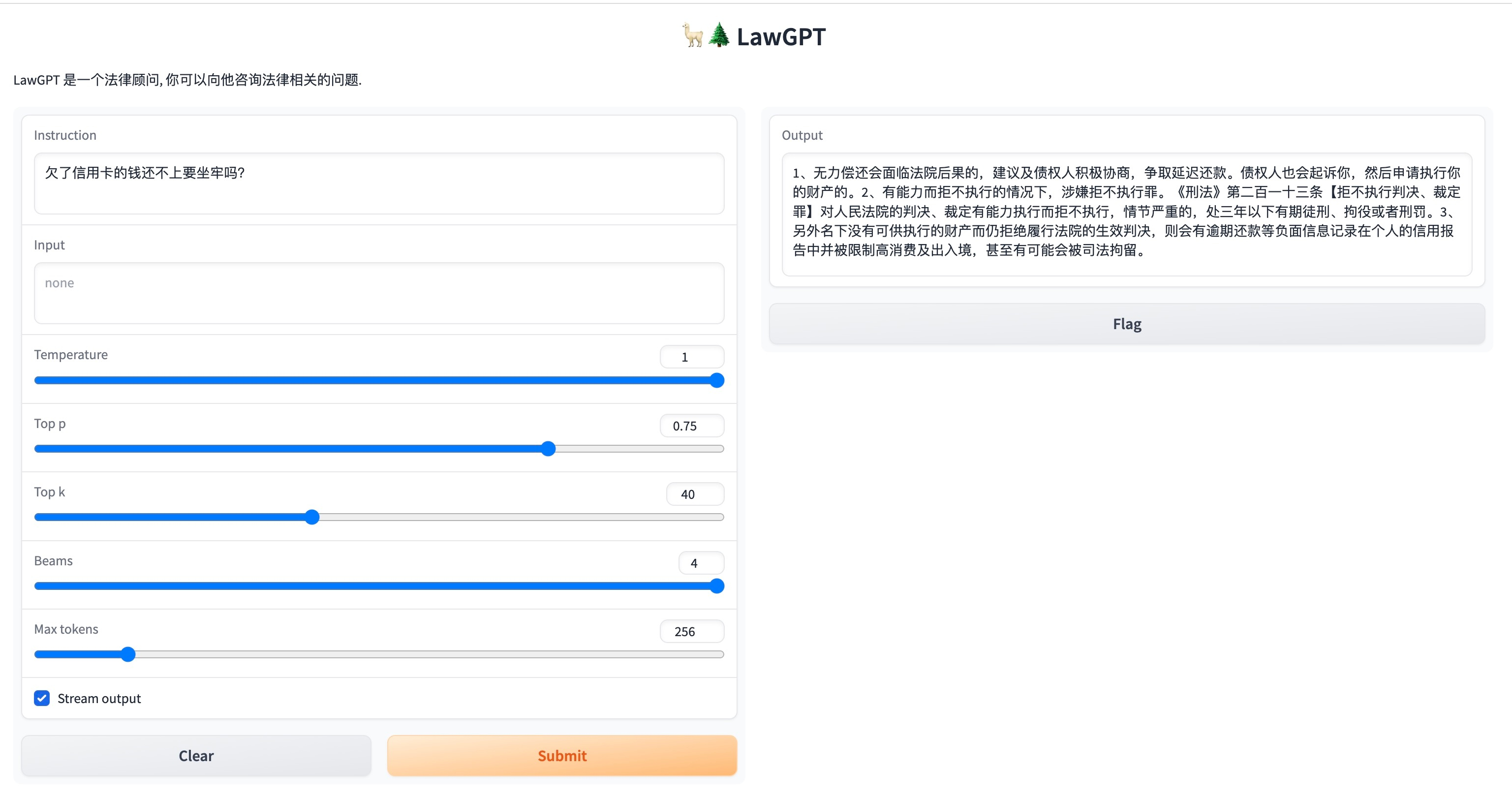 - 模型输出受多种不确定性因素影响,本项目当前无法保证其准确性,严禁用于真实法律场景。